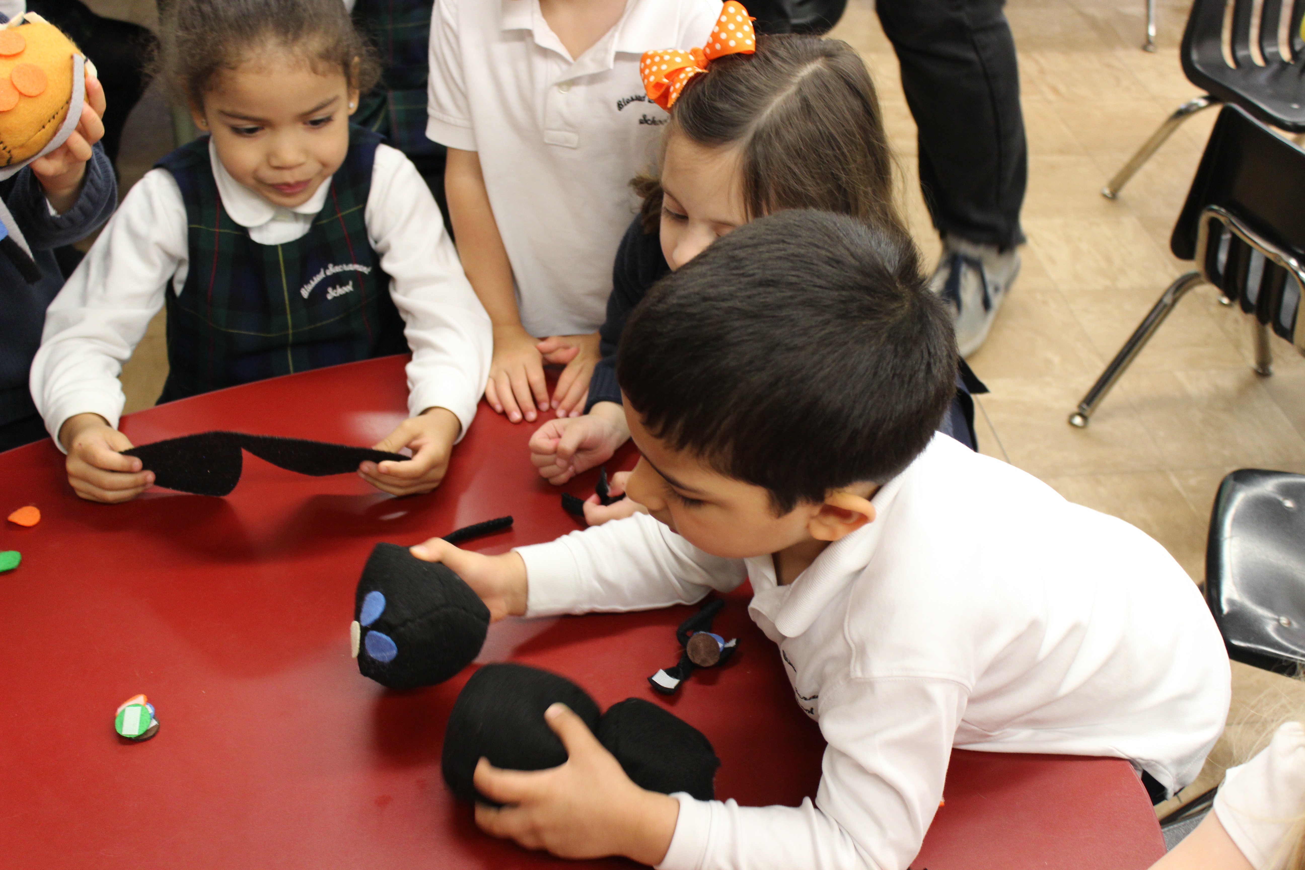 Specially for this lesson modular fabric bug bodies were designed and constructed using felt, stuffing, magnets, and thread. The bodies are designed to reflect the segments of insect and spider bodies.