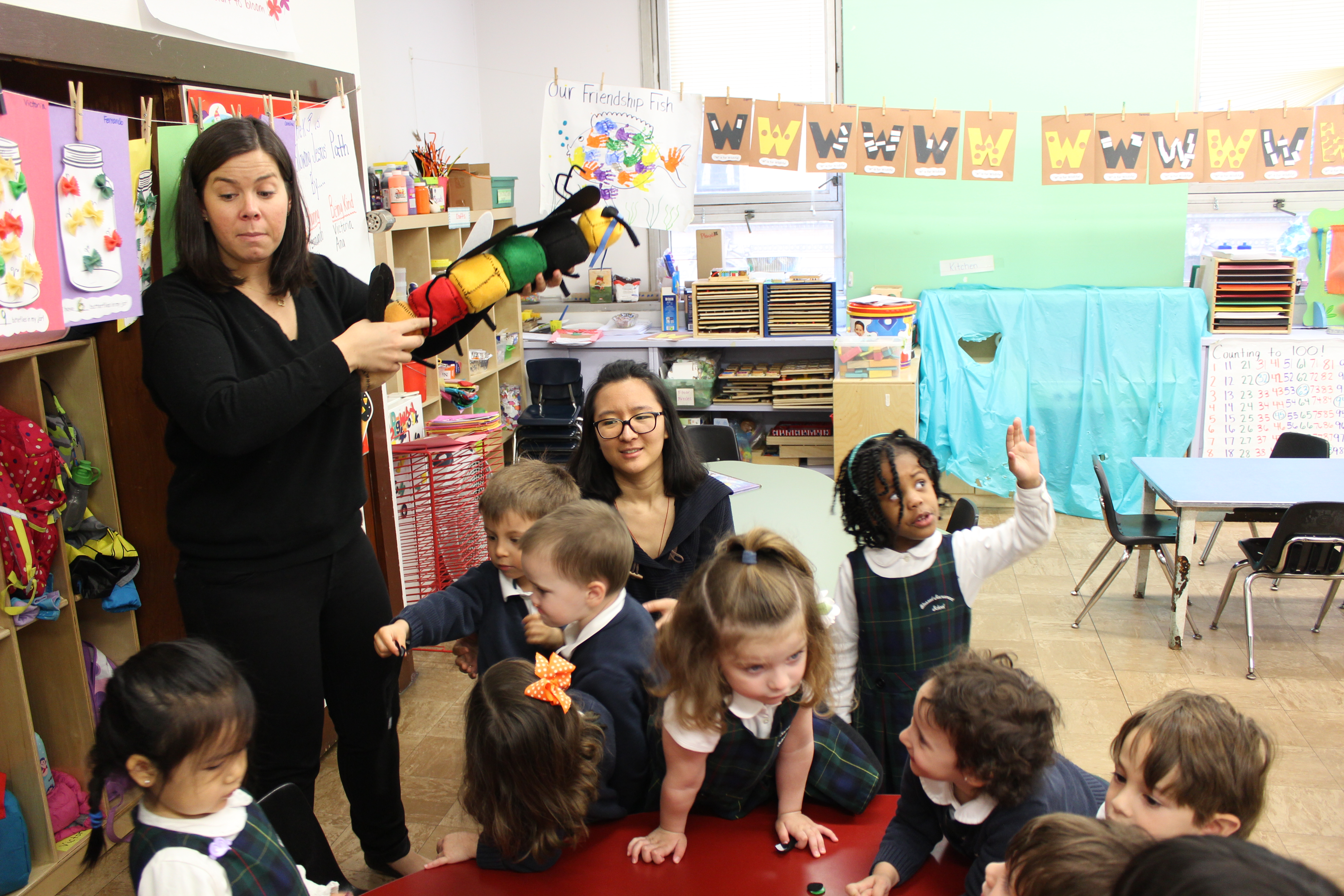 A classroom tool and lesson for pre-school students to demonstrate their understanding of the differences between different bugs.