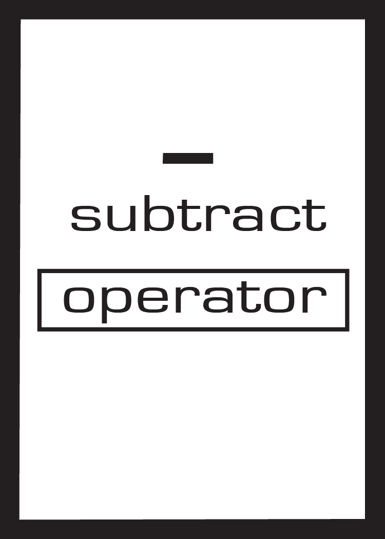 Operator cards reflect the four arithmetic operations, addition, subtraction, multiplication, and division.
